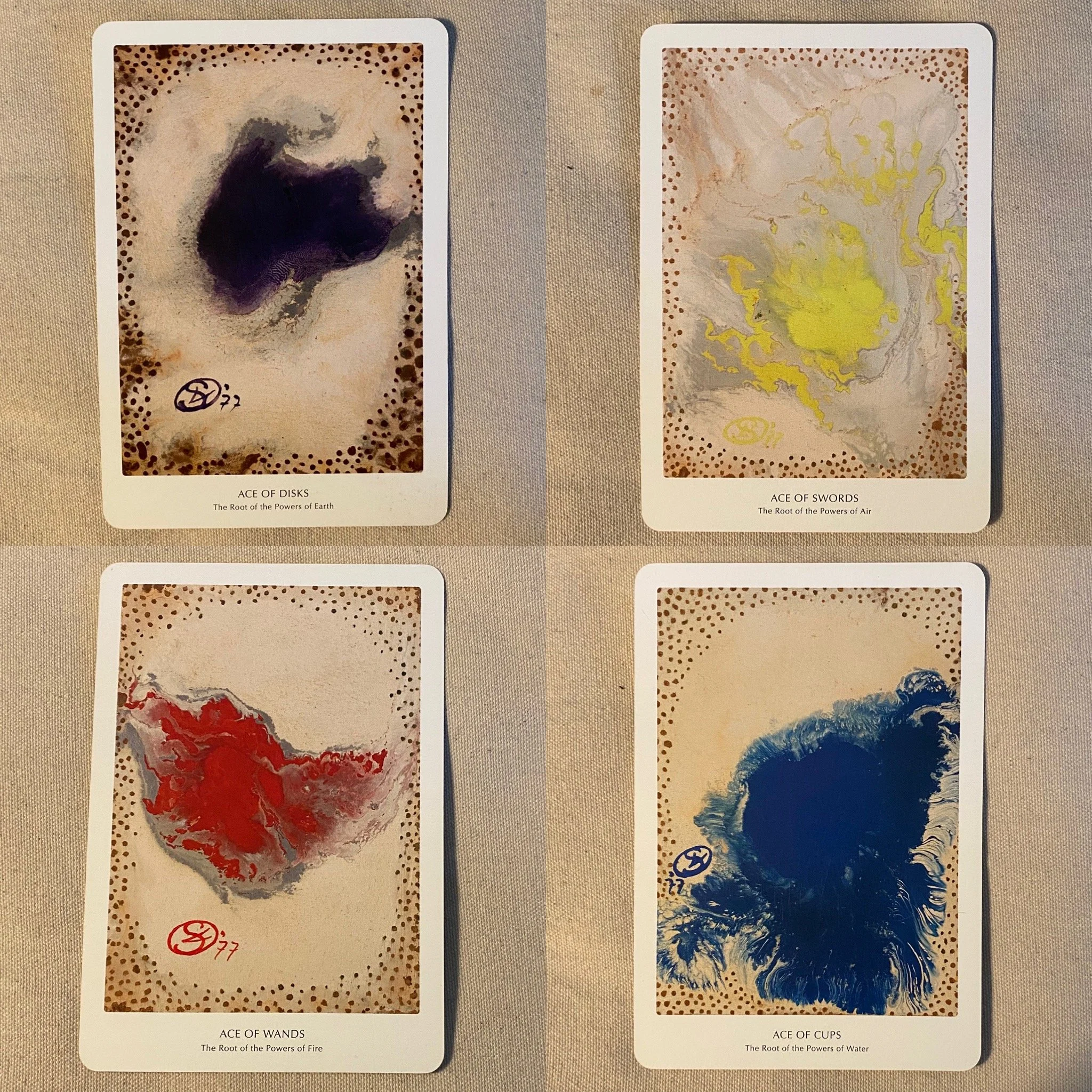 The four Aces from the Ithell Colquhoun poured enamel Tarot